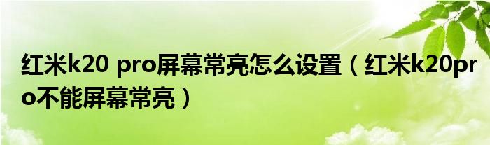 导读 大家好,小跳为你解答以上问题。红米k20 pro屏幕常亮怎么设置,红米k20pro不能屏幕常亮这个问题很多人还不知道,现在让我们一起来看看吧!