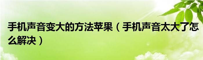 手机声音变大的方法苹果(手机声音太大了怎么解决)