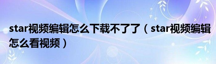 star视频编辑怎么下载不了了(star视频编辑怎么看视频)