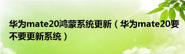 华为mate20鸿蒙系统更新(华为mate20要不要更新系统)