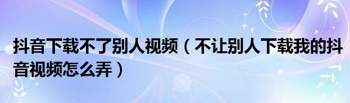 抖音下载不了别人视频(不让别人下载我的抖音视频怎么弄)