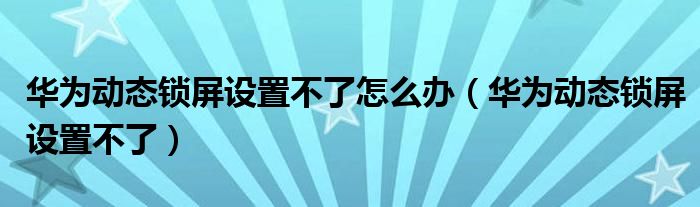 华为动态锁屏设置不了怎么办(华为动态锁屏设置不了)