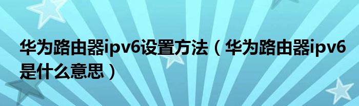 华为路由器ipv6设置方法(华为路由器ipv6是什么意思)