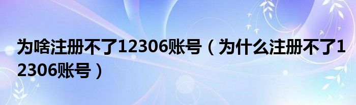为啥注册不了12306账号(为什么注册不了12306账号)