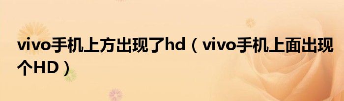 导读 大家好,小跳为你解答以上问题。vivo手机上方出现了hd,vivo手机上面出现个HD这个问题很多人还不知道,现在让我们一起来看看吧!