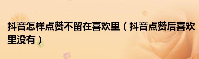 导读 大家好,小跳为你解答以上问题。抖音怎样点赞不留在喜欢里,抖音点赞后喜欢里没有这个问题很多人还不知道,现在让我们一起来看看吧!