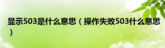 导读 大家好,小跳为你解答以上问题。显示503是什么意思,操作失败503什么意思这个问题很多人还不知道,现在让我们一起来看看吧!