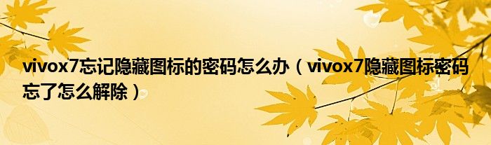 导读 大家好,小跳为你解答以上问题。vivox7忘记隐藏图标的密码怎么办,vivox7隐藏图标密码忘了怎么解除这个问题很多人还不知道,现在让我们一起