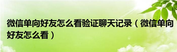 微信单向好友怎么看验证聊天记录(微信单向好友怎么看)
