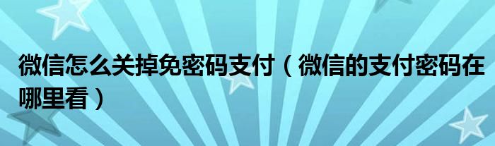 微信怎么关掉免密码支付(微信的支付密码在哪里看)