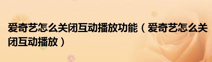 爱奇艺怎么关闭互动播放功能(爱奇艺怎么关闭互动播放)