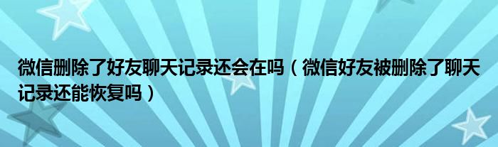 导读 大家好,小跳为你解答以上问题。微信删除了好友聊天记录还会在吗,微信好友被删除了聊天记录还能恢复吗这个问题很多人还不知道,现在让我们