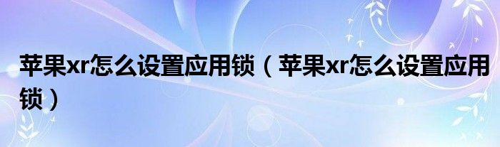 苹果xr怎么设置应用锁(苹果xr怎么设置应用锁)