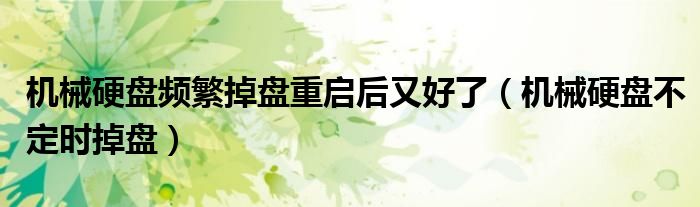 导读 大家好,小跳为你解答以上问题。机械硬盘频繁掉盘重启后又好了,机械硬盘不定时掉盘这个问题很多人还不知道,现在让我们一起来看看吧!