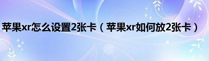 导读 大家好,小跳为你解答以上问题。苹果xr怎么设置2张卡,苹果xr如何放2张卡这个问题很多人还不知道,现在让我们一起来看看吧!