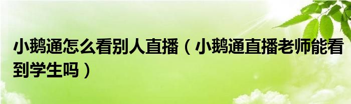 导读 大家好,小跳为你解答以上问题。小鹅通怎么看别人直播,小鹅通直播老师能看到学生吗这个问题很多人还不知道,现在让我们一起来看看吧!