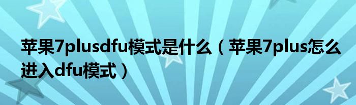 导读 大家好,小跳为你解答以上问题。苹果7plusdfu模式是什么,苹果7plus怎么进入dfu模式这个问题很多人还不知道,现在让我们一起来看看吧!