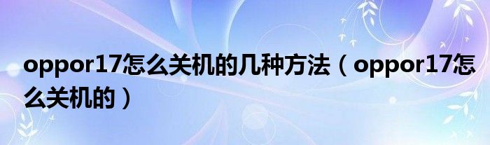 导读 大家好,小跳为你解答以上问题。oppor17怎么关机的几种方法,oppor17怎么关机的这个问题很多人还不知道,现在让我们一起来看看吧!