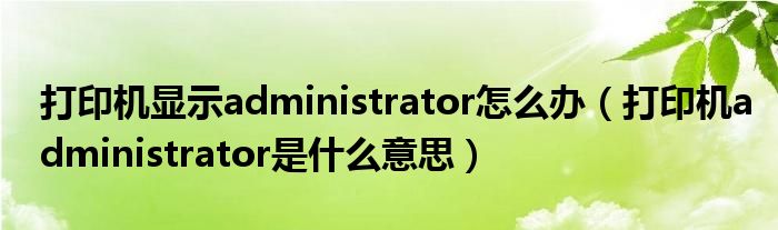 打印机显示administrator怎么办(打印机administrator是什么意思)
