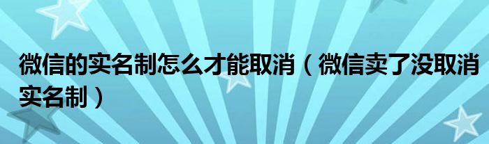 微信的实名制怎么才能取消(微信卖了没取消实名制)