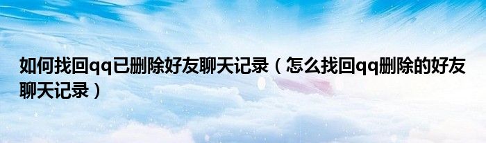 如何找回qq已删除好友聊天记录(怎么找回qq删除的好友聊天记录)