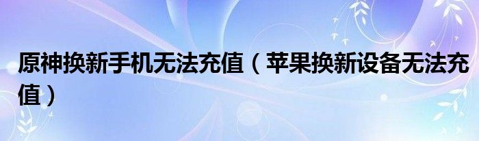 原神换新手机无法充值(苹果换新设备无法充值)