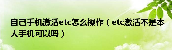 导读 大家好,小跳为你解答以上问题。自己手机激活etc怎么操作,etc激活不是本人手机可以吗这个问题很多人还不知道,现在让我们一起来看看吧!