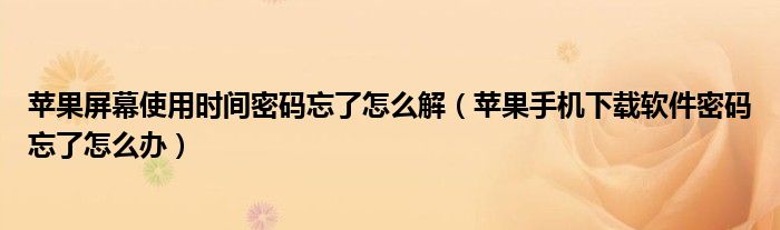 苹果屏幕使用时间密码忘了怎么解(苹果手机下载软件密码忘了怎么办)
