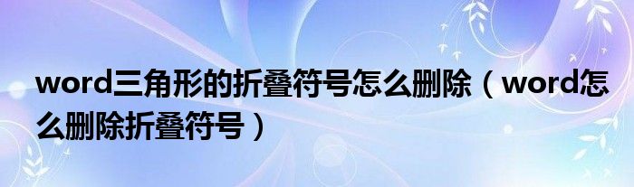 word三角形的折叠符号怎么删除(word怎么删除折叠符号)