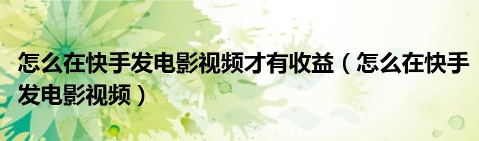 怎么在快手发电影视频才有收益(怎么在快手发电影视频)