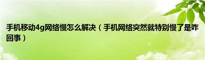 手机移动4g网络慢怎么解决(手机网络突然就特别慢了是咋回事)