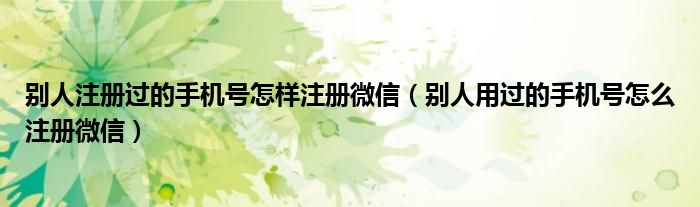 别人注册过的手机号怎样注册微信(别人用过的手机号怎么注册微信)