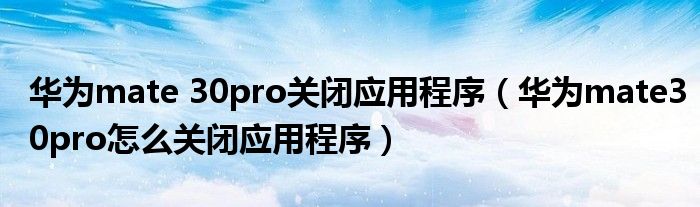 华为mate 30pro关闭应用程序(华为mate30pro怎么关闭应用程序)