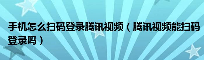 手机怎么扫码登录腾讯视频(腾讯视频能扫码登录吗)