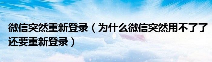 微信突然重新登录(为什么微信突然用不了了还要重新登录)