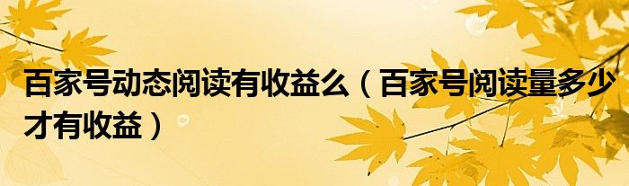 百家号动态阅读有收益么(百家号阅读量多少才有收益)