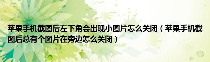 苹果手机截图后左下角会出现小图片怎么关闭(苹果手机截图后总有个图片在旁边怎么关闭)