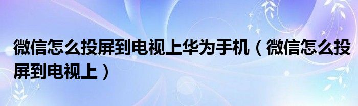 微信怎么投屏到电视上华为手机(微信怎么投屏到电视上)