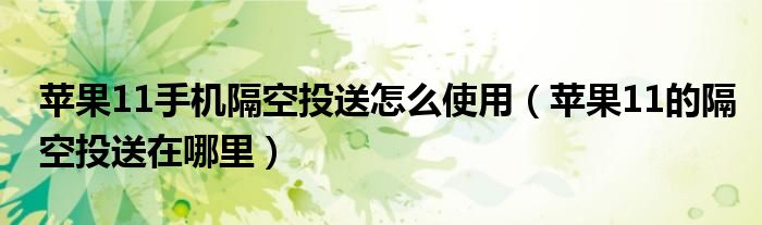 苹果11手机隔空投送怎么使用(苹果11的隔空投送在哪里)