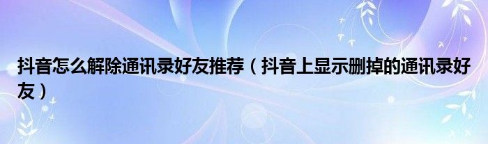 抖音怎么解除通讯录好友推荐(抖音上显示删掉的通讯录好友)