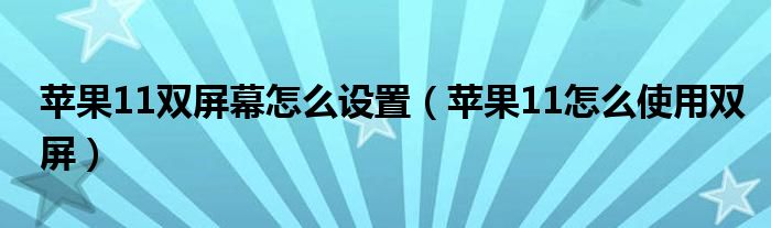 苹果11双屏幕怎么设置(苹果11怎么使用双屏)