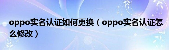 oppo实名认证如何更换(oppo实名认证怎么修改)