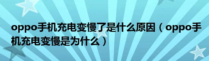 oppo手机充电变慢了是什么原因(oppo手机充电变慢是为什么)