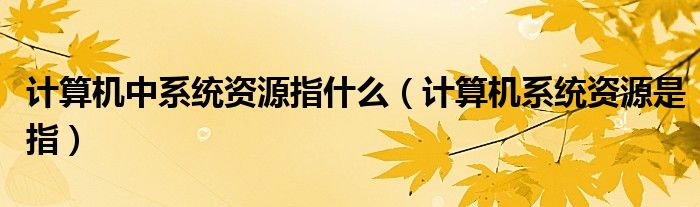 导读 大家好,小跳为你解答以上问题。计算机中系统资源指什么,计算机系统资源是指这个问题很多人还不知道,现在让我们一起来看看吧!