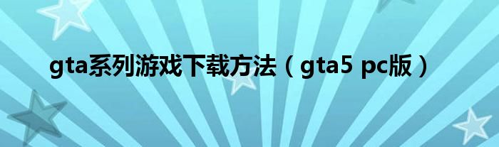 大家好,麟非来为大家解答以上问题,gta系列游戏下载方法,gta5 pc版很多人还不知道,现在让我们一起来看看吧!
