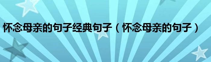 怀念母亲的句子经典句子(怀念母亲的句子)