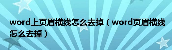 word上页眉横线怎么去掉(word页眉横线怎么去掉)