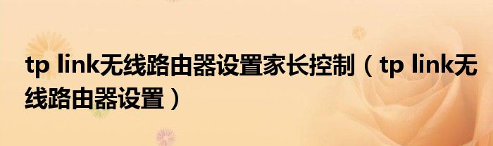 tp link无线路由器设置家长控制(tp link无线路由器设置)