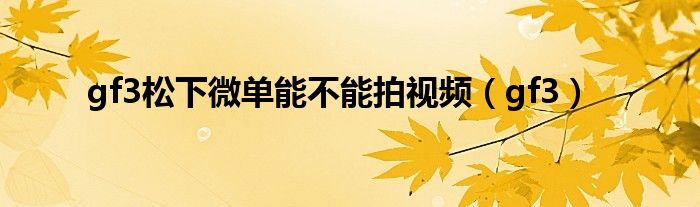 大家好,麟非来为大家解答以上问题,gf3松下微单能不能拍视频,gf3很多人还不知道,现在让我们一起来看看吧!