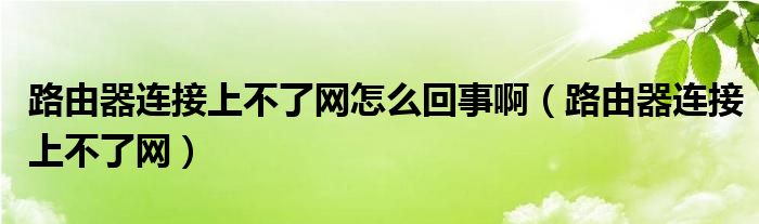 路由器连接上不了网怎么回事啊(路由器连接上不了网)